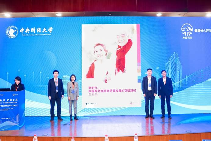 论坛现场,由保险学院、中国精算研究院与友邦人寿联合编制的《新时代中国养老金融高质量发展的突破路径白皮书》正式发布。白皮书主要撰稿人郑苏晋教授介绍,当前我国养老金融领域存在总量不足、结构失衡等问题,需从宏观、中观、微观三个层面协同发力,推动养老金融产品与服务创新;白皮书提出的“12345+10”实施框架,为养老金融行业发展提供了具体行动路线。